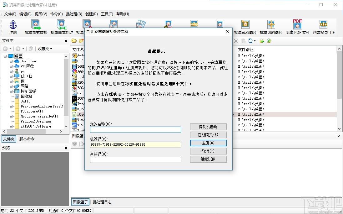 2、点击软件注册按钮弹出软件注册弹框,点击输入名称和注册码即可进行软件注册