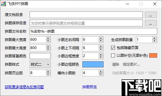 飞侠PPT拼图是一款可以生成PPT拼图的工具,它的使用方式简单,导入图片之后根据用户的需求简单的设置参数就可以快速的将图片拼接在一起;这款软件为用户提供了三种拼接模式,并且提供预览窗口,用户在进行拼接的时候可以先预览图片然后再导出,这样可以有效的避免用户盲设参数导致的效果不佳问题;该软件还支持用户设置拼接图的背景颜色,边距以及样式等,让用户的拼接的图片不会特别的单调,软件安全绿色,使用免费,需要的朋友可以在本站下载使用。